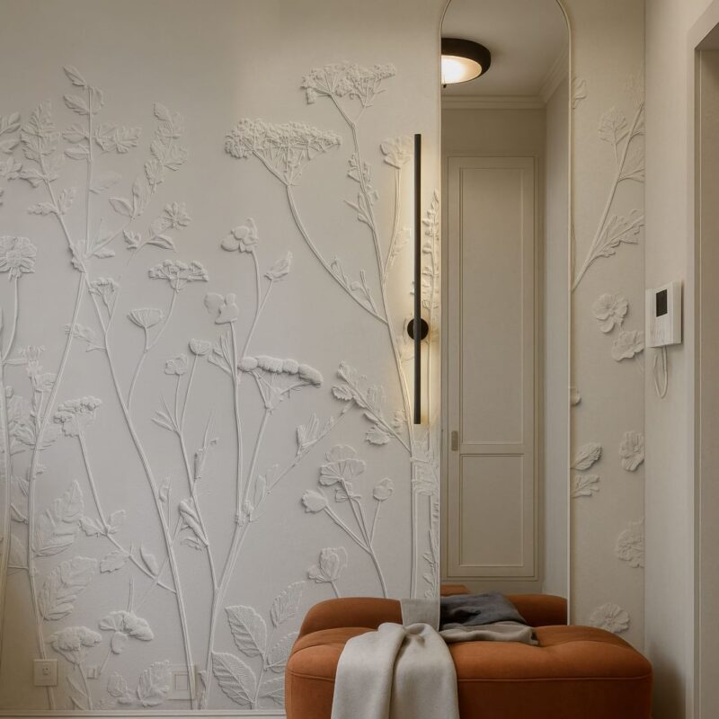 “Lira” presenta una composizione di forme ispirate alla natura, disposte con equilibrio su uno sfondo chiaro e uniforme. Le linee slanciate si intrecciano con eleganza, suggerendo un senso di leggerezza e continuità. È una decorazione pensata per ambienti essenziali, in cui ogni dettaglio contribuisce all’armonia complessiva.